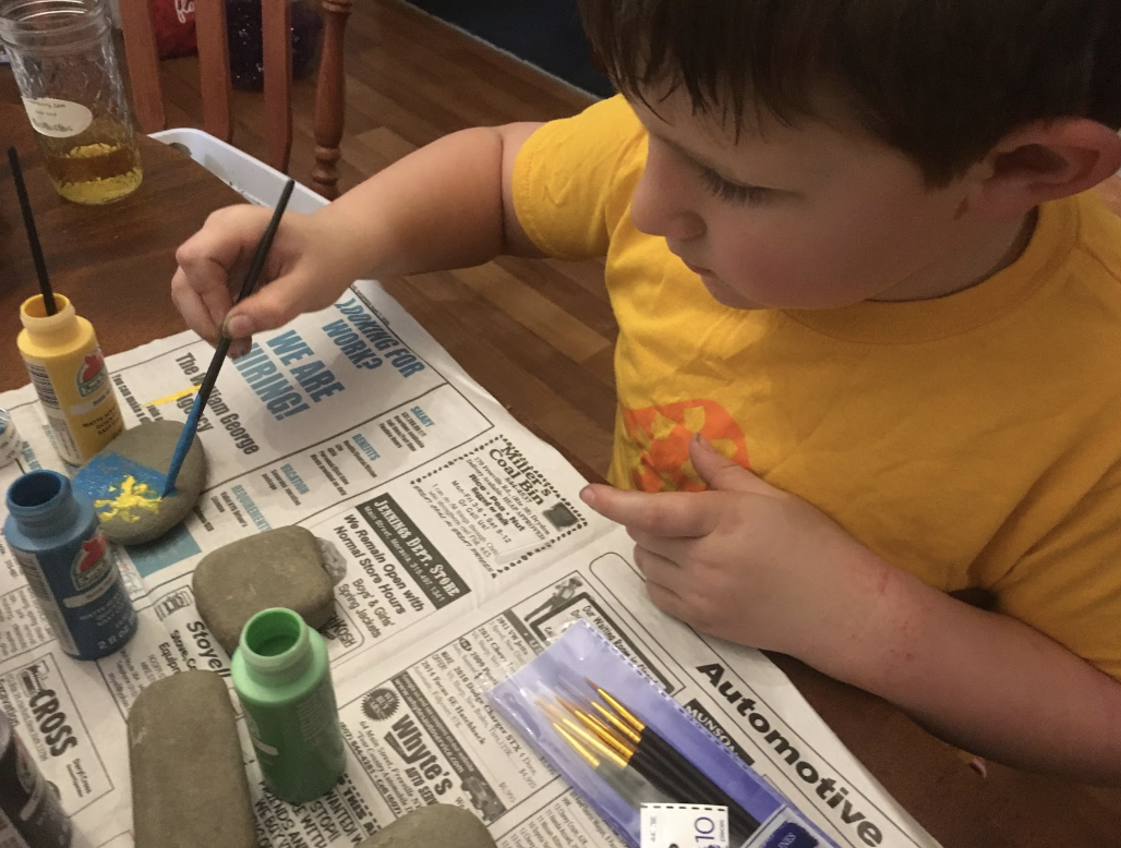 For a short time, the drying rocks are forgotten, brushes washed, newspaper recycled. After an hour, a day, or a week, the rocks are rediscovered and again we’re outside. This time not to collect the rocks from nature but to place them back in nature: in a new spot, with a new look, and a new story to share.